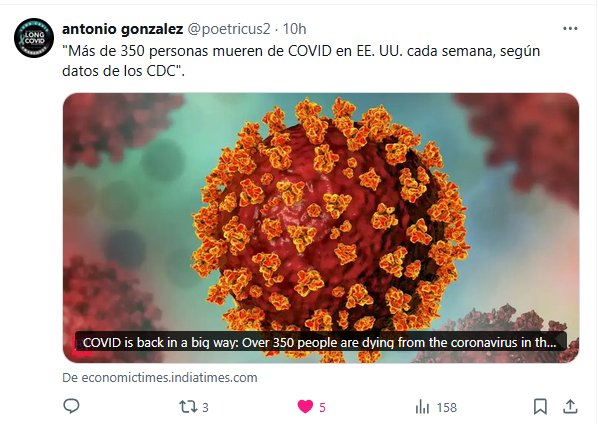 Y QUIEN SABE SI LOS CUENTAN A TODOS! «Más de 350 personas mueren de COVID en EE. UU. cada semana, según datos de los CDC». Posted on mayo 25, 2025 por coronado https://economictimes.indiatimes.com/news/international/us/covid-is-back-in-a-big-way-over-350-people-are-dying-from-the-coronavirus-in-the-u-s-each-week-says-cdc-data/articleshow/121384710.cms?from=mdr