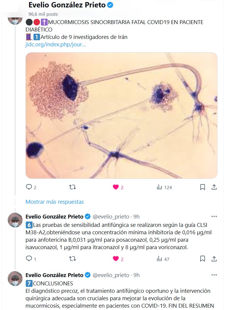 Dr. Evelio González Prieto @evelio_prieto · ⚫️🔴✝️MUCORMICOSIS SINOORBITARIA FATAL COVID19 EN PACIENTE DIABÉTICO Posted on junio 3, 2025 por coronado https://www.jidc.org/index.php/journal/article/view/40452530