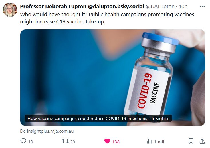 NO NOS QUEDA OTRA: IRONÍA, SARCASMO, BURLA, SOCARRONERÍA Profesora Deborah Lupton @dalupton.bsky.social @DALupton ¿Quién lo hubiera pensado? Las campañas de salud pública que promueven las vacunas podrían aumentar la vacunación contra la COVID-19