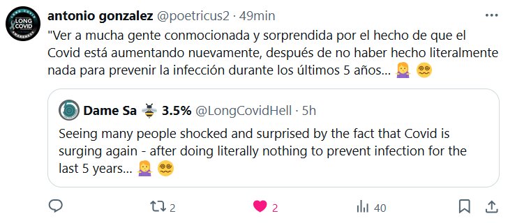 «Ver a mucha gente conmocionada y sorprendida por el hecho de que el Covid está aumentando nuevamente, después de no haber hecho literalmente nada para prevenir la infección durante los últimos 5 años… 🤷♀️ 😵💫