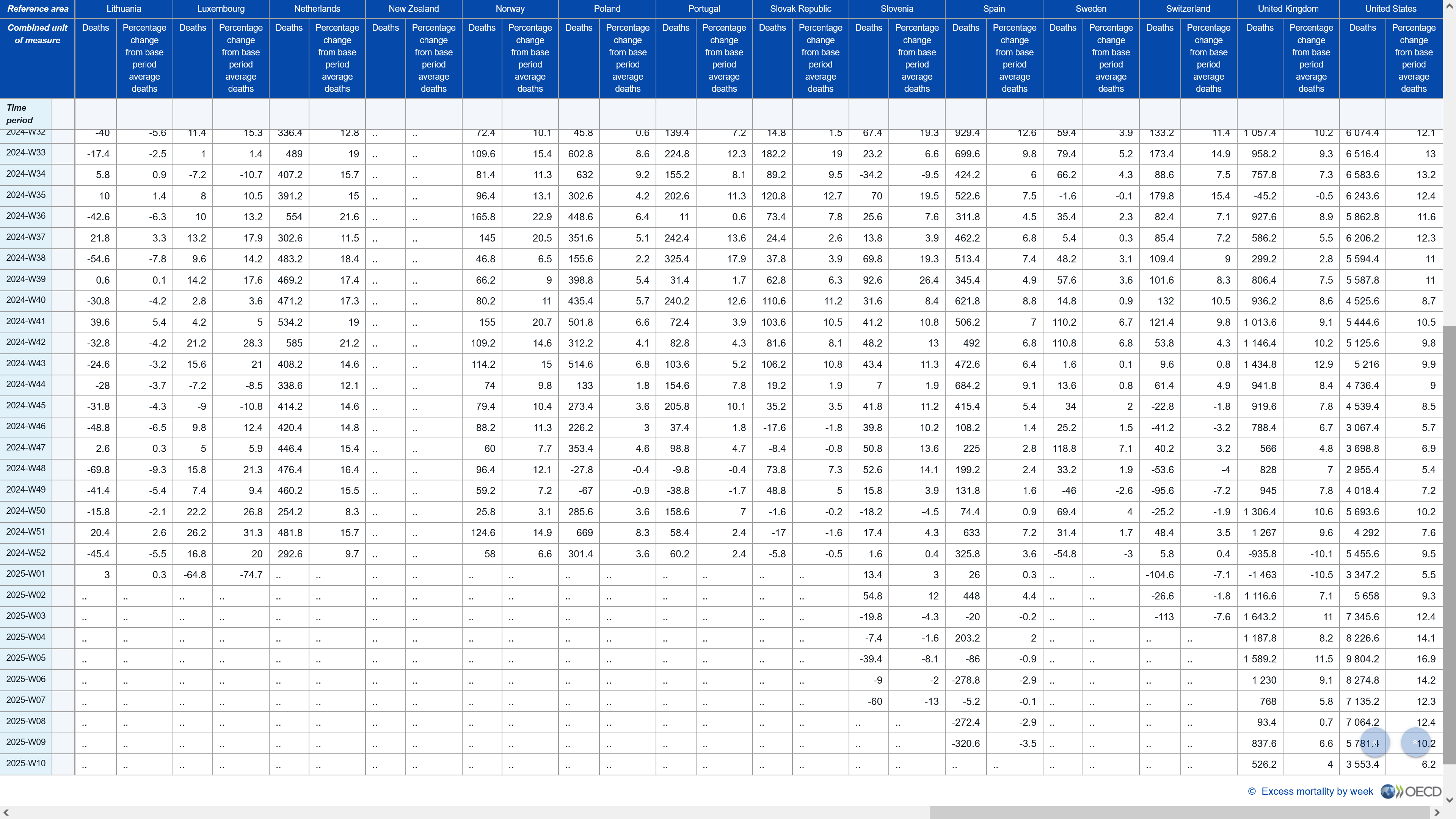 CyFi @CyFi10 Sigue habiendo un exceso de muertes. Actualizado en varios países desde el 26 de mayo hasta la semana 10 de 2025. Posted on junio 4, 2025 por coronado https://x.com/CyFi10/status/1929988274011156708