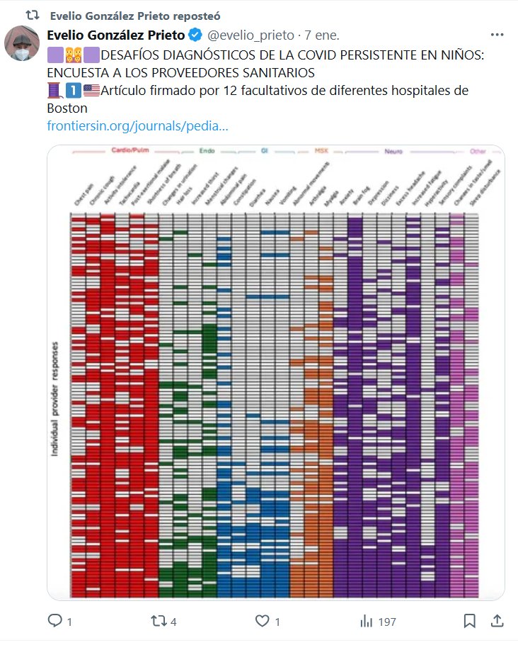 LESA HUMANIDAD Evelio González Prieto @evelio_prieto · 7 ene. 🟪👩👩👧👧🟪DESAFÍOS DIAGNÓSTICOS DE LA COVID PERSISTENTE EN NIÑOS: ENCUESTA A LOS PROVEEDORES SANITARIOS 🧵1⃣🇺🇸Artículo firmado por 12 facultativos de diferentes hospitales de Boston