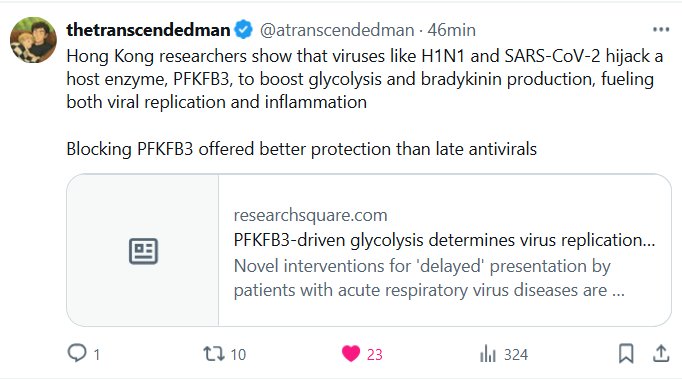 Investigadores de Hong Kong demuestran que virus como el H1N1 y el SARS-CoV-2 secuestran una enzima huésped, la PFKFB3, para impulsar la glucólisis y la producción de bradicinina, lo que fomenta tanto la replicación viral como la inflamación. El bloqueo de la PFKFB3 ofreció una mayor protección que los antivirales tardíos.