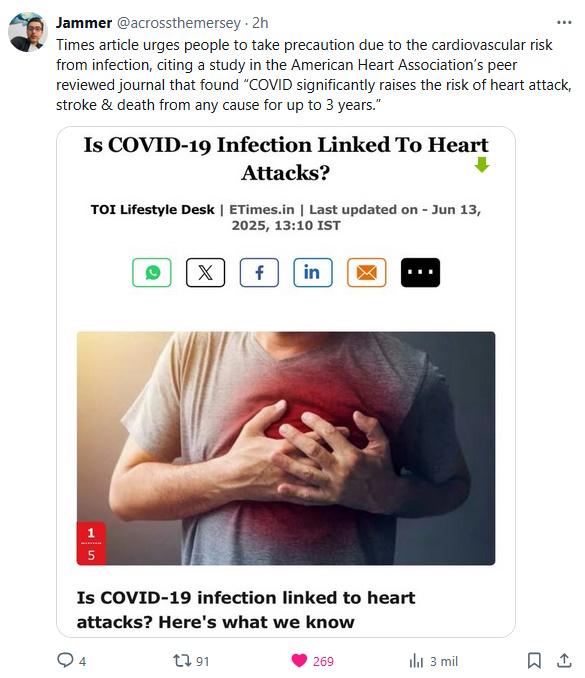 La Asociación Estadounidense del Corazón encontró que «el COVID aumenta significativamente el riesgo de ataque cardíaco, accidente cerebrovascular y muerte por cualquier causa hasta por 3 años»