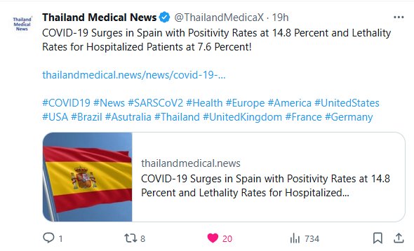 19-6-25: 6º AÑO DE «FIN DE PANDEMIA» DE COVID «LEVE» Noticias Médicas de Tailandia @ThailandMedicaX Los casos de COVID-19 aumentan en España, con una tasa de positividad del 14,8 % y una tasa de letalidad en pacientes hospitalizados del 7,6 %.