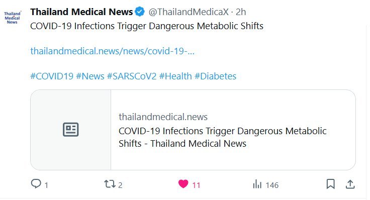 Noticias Médicas de Tailandia @ThailandMedicaX Las infecciones por COVID-19 provocan peligrosos cambios metabólicos Posted on junio 19, 2025 por coronado https://www.thailandmedical.news/news/covid-19-infections-trigger-dangerous-metabolic-shifts