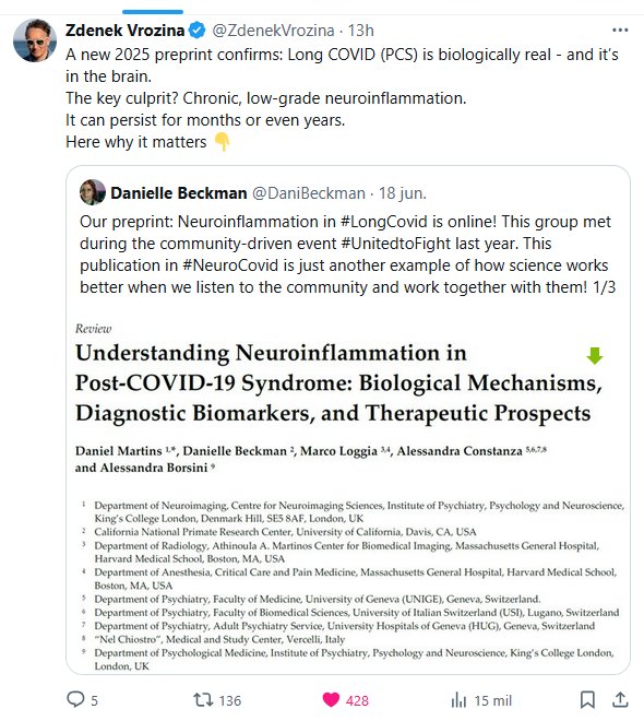 Una nueva preimpresión de 2025 confirma: la COVID persistente (PCS) es biológicamente real y se localiza en el cerebro. ¿La principal causa? Neuroinflamación crónica de bajo grado. Puede persistir durante meses o incluso años.