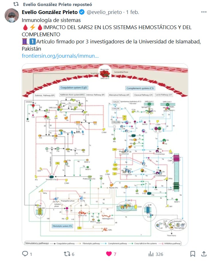 Dr. Evelio González Prieto @evelio_prieto · Inmunología de sistemas 🩸⚡️🩸IMPACTO DEL SARS2 EN LOS SISTEMAS HEMOSTÁTICOS Y DEL COMPLEMENTO 🧵1⃣Artículo firmado por 3 investigadores de la Universidad de Islamabad, Pakistán