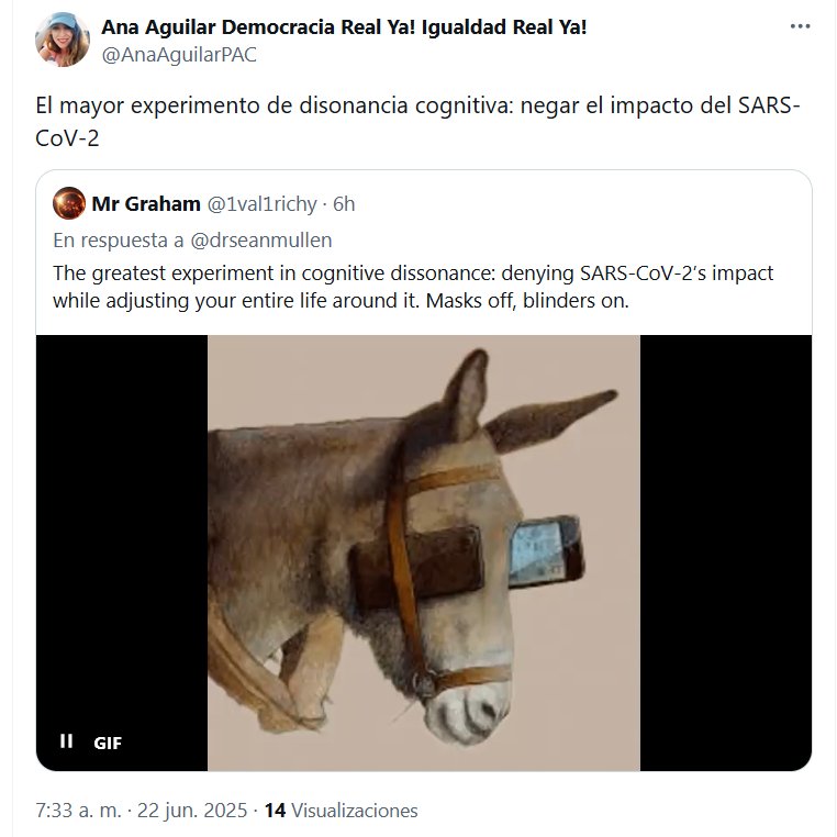 BIGBROTHER1984 Ana Aguilar Democracia Real Ya! Igualdad Real Ya! @AnaAguilarPAC El mayor experimento de disonancia cognitiva: negar el impacto del SARS-CoV-2 Posted on junio 22, 2025 por coronado
