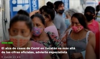 SUBREGISTRO, OCULTACIÓN Y OMERTÁ COVID MUNDIAL El alza de casos de Covid en Yucatán va más allá de las cifras oficiales, advierte especialista Posted on junio 27, 2025 por coronado https://www.yucatanalamano.com/el-alza-de-casos-de-covid-en-yucatan-va-mas-alla-de-las-cifras-oficiales-advierte-especialista/