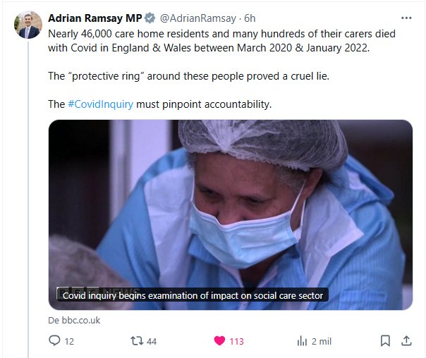 ESCUCHO VOCES Casi 46.000 residentes de residencias y cientos de sus cuidadores fallecieron por COVID-19 en Inglaterra y Gales entre marzo de 2020 y enero de 2022. El «círculo protector» que rodeaba a estas personas resultó ser una cruel mentira. La #InvestigaciónCovid debe determinar la responsabilidad.