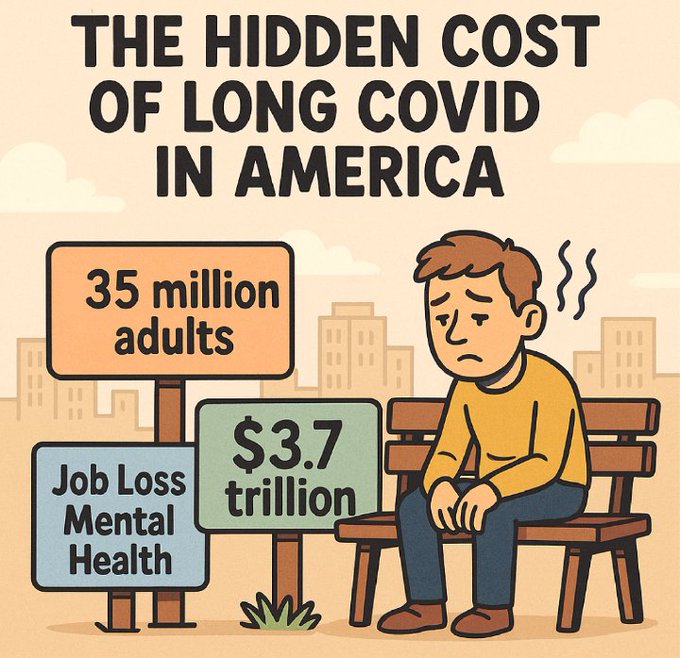 Hans Collin @HansCollin2 · 11h Sea que lo sepan o no, >50% de los que tuvieron Covid TIENEN un daño orgánico (ocurre MÁS en edades pediátricas). 🇺🇸Pero el costo OCULTO de Long Covid es aún más impresionante: 35 MILLONES de adultos $~4 MIL MILLONES en pérdidas ¿Por qué no usas una N95? [MASCARILLA]