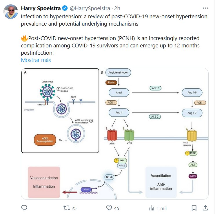 DR. Harry Spoelstra @HarrySpoelstra Hipertensión asociada a la infección: una revisión de la prevalencia de hipertensión de nueva aparición post-COVID-19 y los posibles mecanismos subyacentes 🔥La hipertensión de nueva aparición post-COVID (HNP) es una complicación cada vez más reportada entre los sobrevivientes de COVID-19 y puede aparecer hasta 12 meses después de la infección.