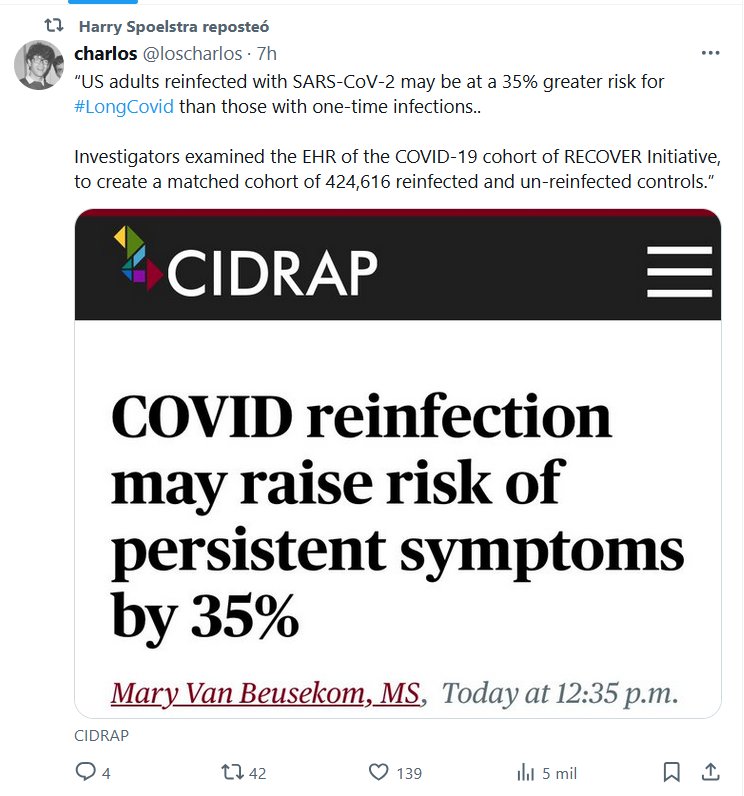 Los investigadores examinaron el historial clínico electrónico (HCE) de la cohorte de COVID-19 de la Iniciativa RECOVER para crear una cohorte emparejada de 424 616 controles reinfectados y no reinfectados”.