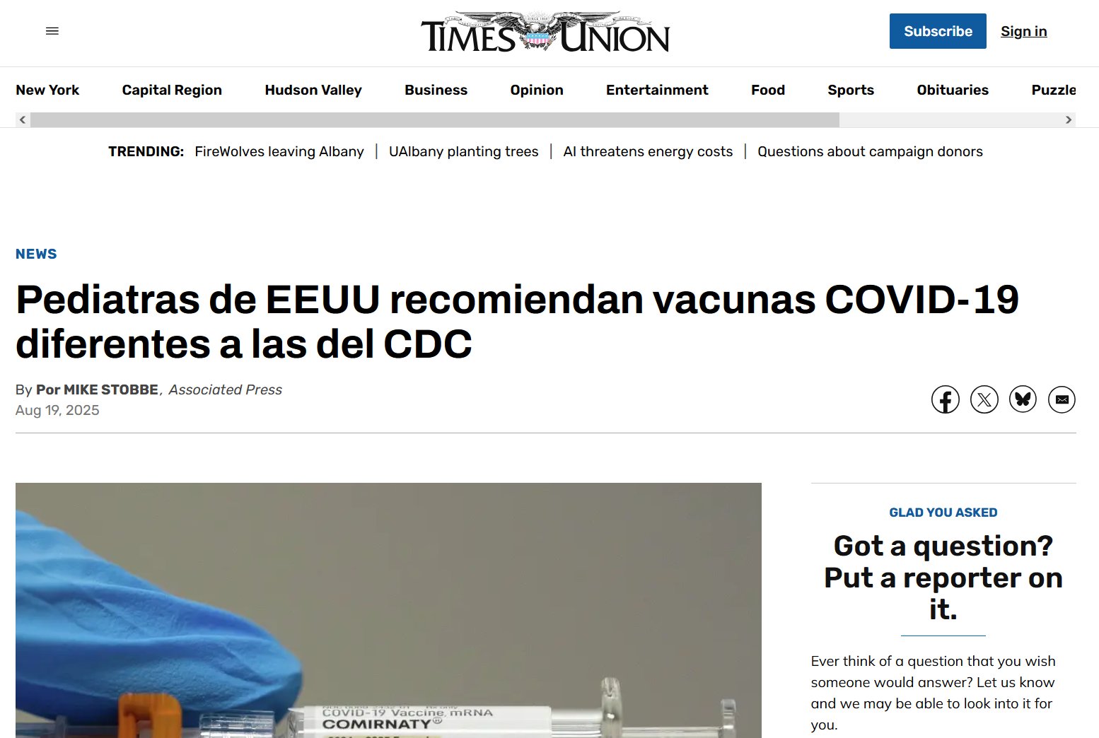 Pediatras de EEUU recomiendan vacunas COVID-19 diferentes a las [RECOMENDACIONES] del CDC NUEVA YORK (AP) — Por primera vez en 30 años, la Academia Estadounidense de Pediatría se aleja sustancialmente