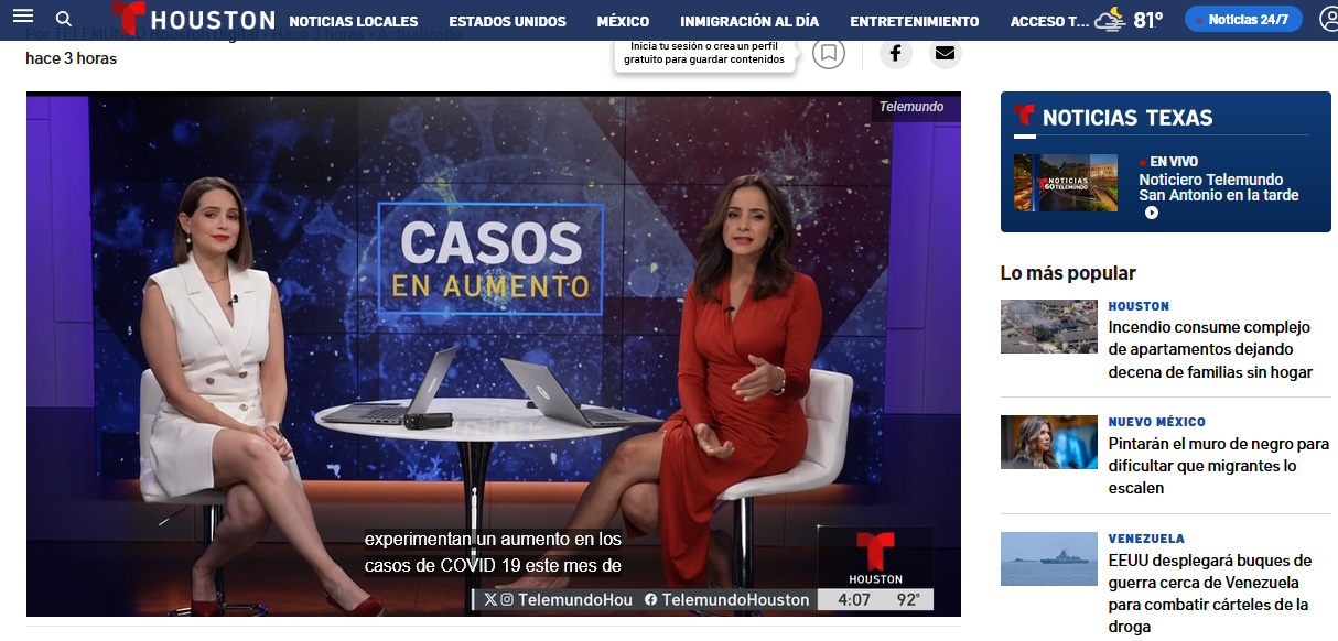 Stratus: la nueva variante de COVID-19 que se propaga y aumentan infecciones En agosto, 28000 pacientes fueron examinados por COVID-19, de ellos un 8,9% dieron positivo al virus. Posted on agosto 20, 2025 por coronado https://www.telemundohouston.com/noticias/local/stratus-la-nueva-variante-de-covid-19-que-se-propaga-y-aumentan-infecciones/2511746/