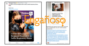 Circula en redes sociales y grupos de Telegram una noticia sobre que las personas que recibieron la vacuna del Covid-19 son más propensos a sufrir enfermedades respiratorias. Sin embargo, el texto se publicó en un medio de confianza dudosa y se basa en un solo estudio focalizado cuyos resultados no son concluyentes para un contexto general.