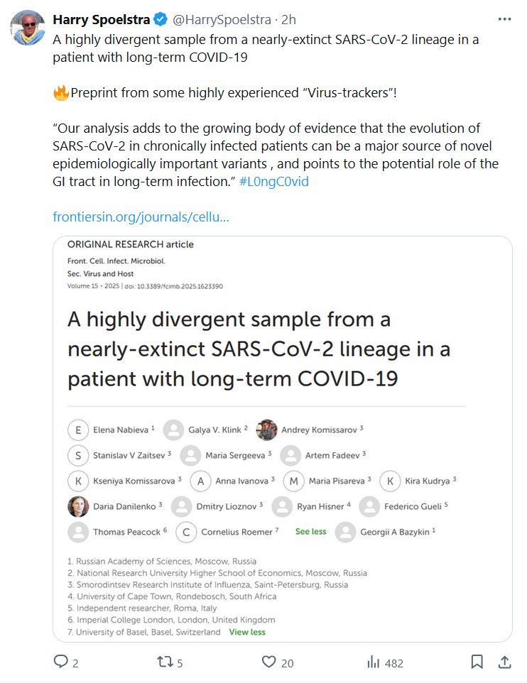 DR. Harry Spoelstra @HarrySpoelstra · Una muestra altamente divergente de un linaje de SARS-CoV-2 casi extinto en un paciente con COVID-19 crónica 🔥¡Preimpresión de algunos «rastreadores de virus» con mucha experiencia!