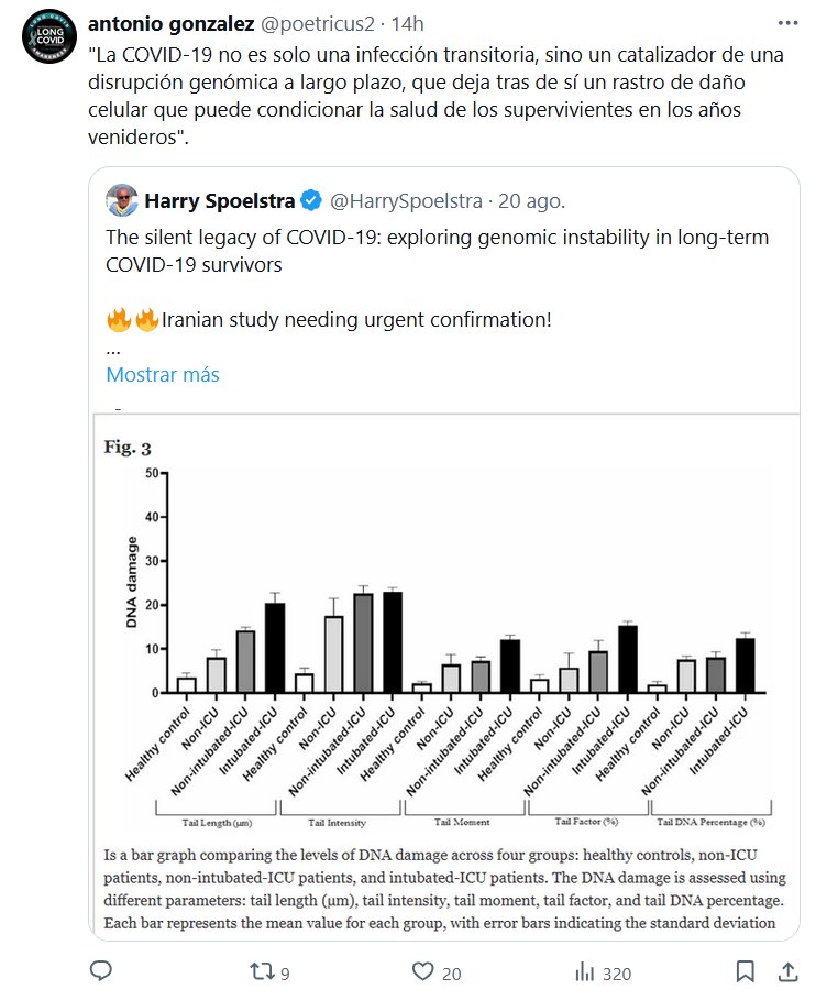 Prof. Antonio González @poetricus2 · «La COVID-19 no es solo una infección transitoria, sino un catalizador de una disrupción genómica a largo plazo, que deja tras de sí un rastro de daño celular que puede condicionar la salud de los supervivientes en los años venideros».