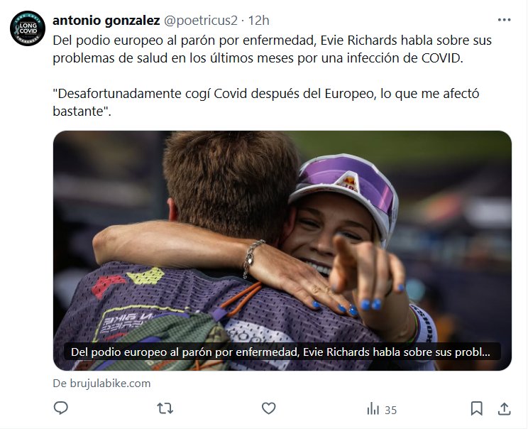 Prof. Antonio González @poetricus2 · Del podio europeo al parón por enfermedad, Evie Richards habla sobre sus problemas de salud en los últimos meses por una infección de COVID. «Desafortunadamente cogí Covid después del Europeo, lo que me afectó bastante»