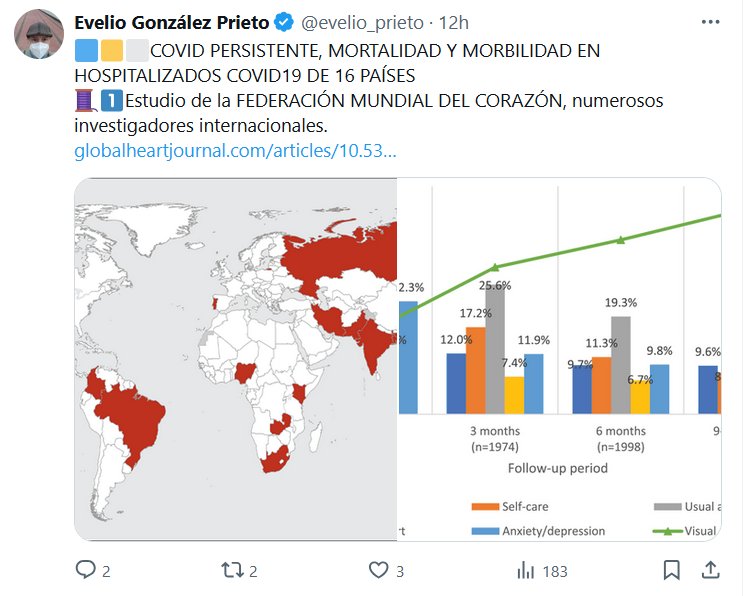 Dr. Evelio González Prieto @evelio_prieto · 🟦🟨⬜️COVID PERSISTENTE, MORTALIDAD Y MORBILIDAD EN HOSPITALIZADOS COVID19 DE 16 PAÍSES 🧵1⃣Estudio de la FEDERACIÓN MUNDIAL DEL CORAZÓN, numerosos investigadores internacionales.