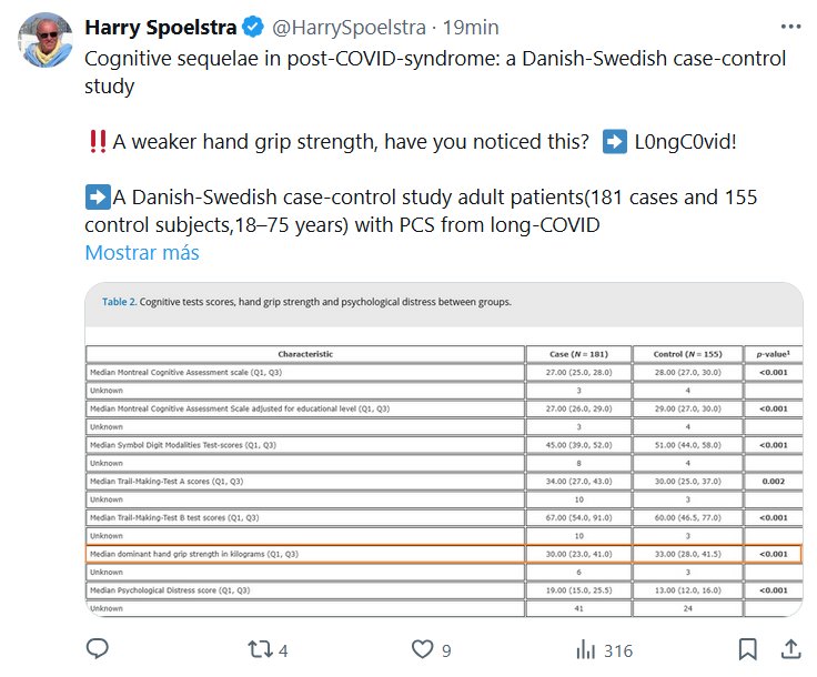 DR. Harry Spoelstra @HarrySpoelstra Secuelas cognitivas en el síndrome post-COVID: un estudio de casos y controles danés-sueco ‼️ ¿Has notado una menor fuerza de agarre en la mano? ➡️ ¡Alargar la COVID-19!