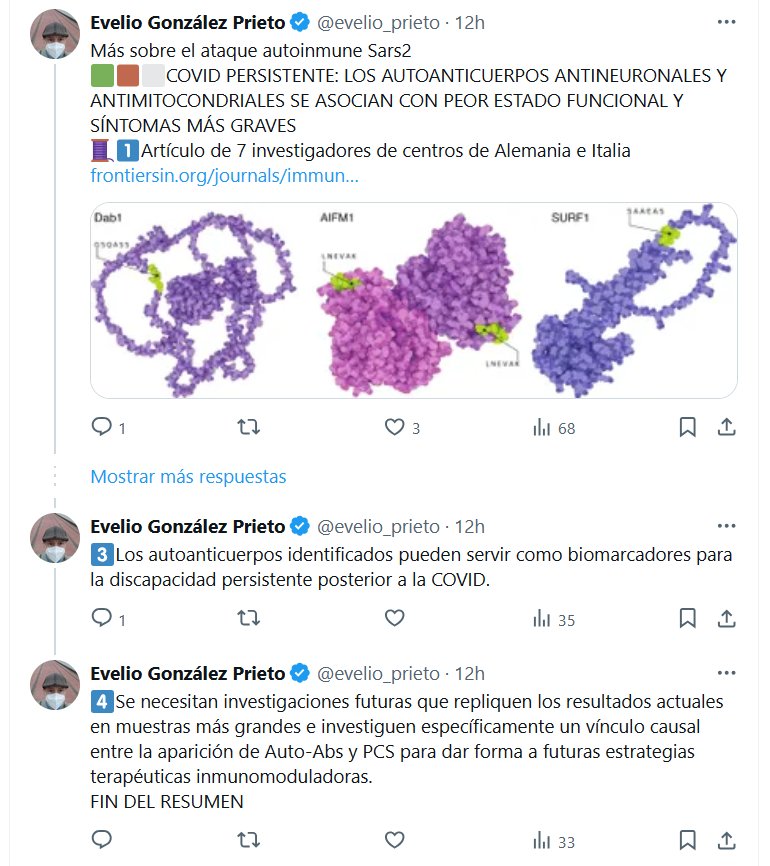 DR. Evelio González Prieto @evelio_prieto · 12h Más sobre el ataque autoinmune Sars2 🟩🟫⬜️COVID PERSISTENTE: LOS AUTOANTICUERPOS ANTINEURONALES Y ANTIMITOCONDRIALES SE ASOCIAN CON PEOR ESTADO FUNCIONAL Y SÍNTOMAS MÁS GRAVES 🧵1⃣Artículo de 7 investigadores de centros de Alemania e Italia
