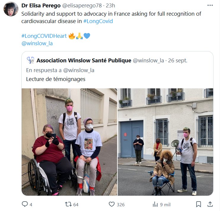 Dra. Elisa Perego @elisaperego78 · Solidaridad y apoyo a las organizaciones de defensa en Francia que piden el pleno reconocimiento de las enfermedades cardiovasculares en la #CovidPersistente #CorazónCOVIDPersistente 🔥🙏💙 @winslow_la