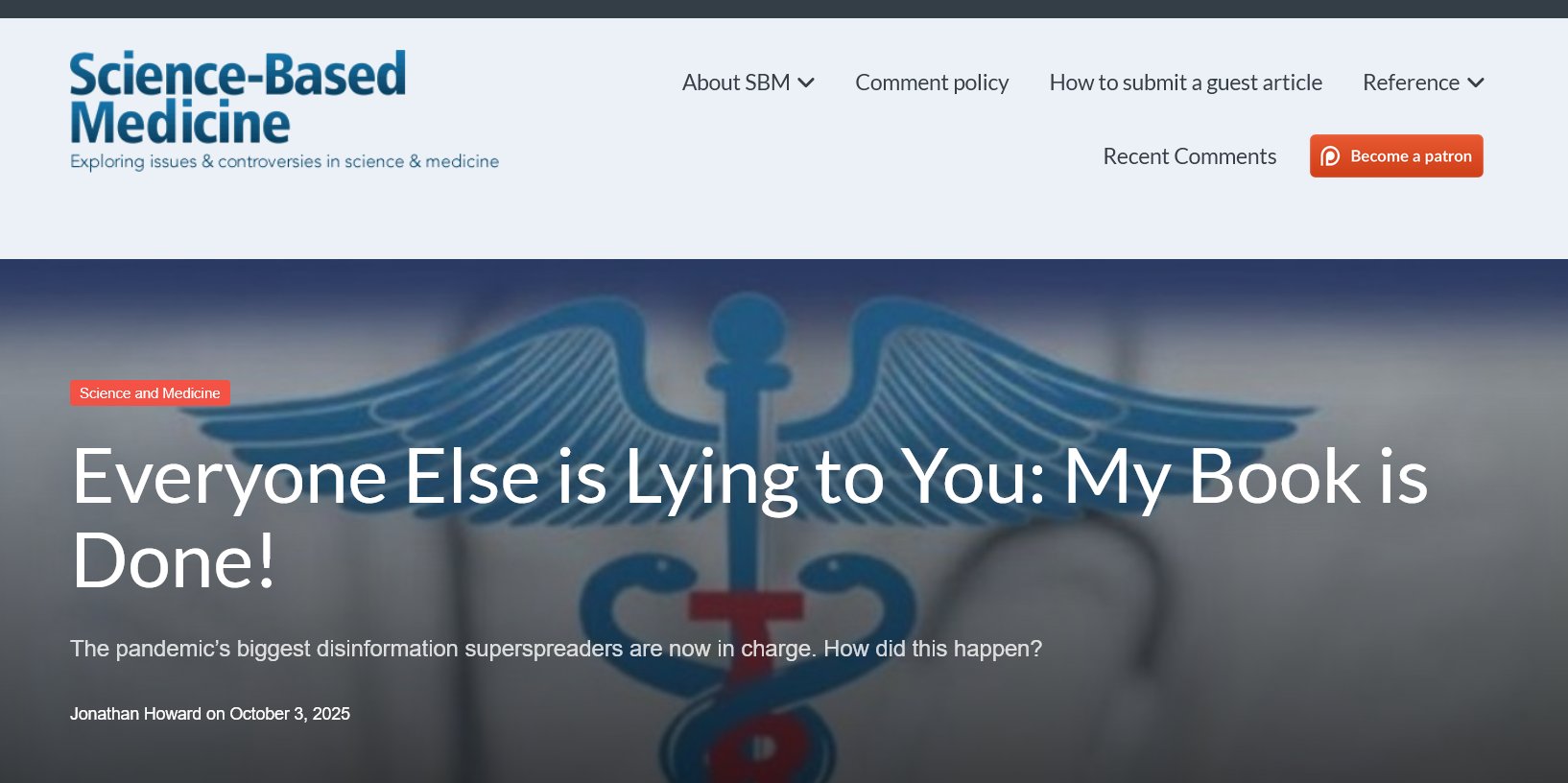 Todos los demás te mienten: ¡Mi libro está terminado! Los mayores propagadores de desinformación de la pandemia ahora están al mando. ¿Cómo sucedió esto? Jonathan Howard, 3 de octubre de 2025 La COVID-19 mató a 1,2 millones de estadounidenses, hirió a millones más, y aún no ha terminado. Aunque se desarrolló una vacuna en tiempo récord y salvó millones de vidas, cientos de miles de personas fallecieron debido a la desinformación antivacunas