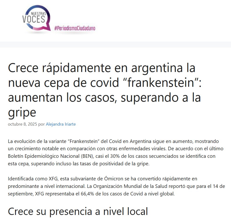 Crece rápidamente en argentina la nueva cepa de covid “frankenstein”: aumentan los casos, superando a la gripe La evolución de la variante “Frankenstein” del Covid en Argentina sigue en aumento, mostrando un crecimiento notable en comparación con otras enfermedades