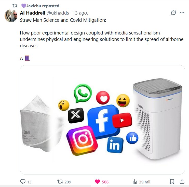 💜Javichu reposteó a Al Haddrell @ukhadds · Ciencia del hombre de paja y mitigación de la COVID: Cómo un diseño experimental deficiente, sumado al sensacionalismo mediático, socava las soluciones físicas y de ingeniería para limitar la propagación de enfermedades transmitidas por el aire.