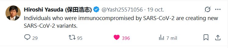 IRREFUTABLE! Hiroshi Yasuda (Hiroshi Yasuda) @Yash25571056 Las personas inmunodeprimidas por el SARS-CoV-2 están creando nuevas variantes del virus. Posted on octubre 20, 2025 por coronado