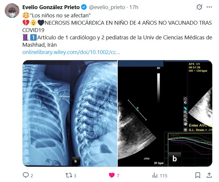 Dr. Evelio González Prieto @evelio_prieto · 😳»Los niños no se afectan» 💔👶🖤NECROSIS MIOCÁRDICA EN NIÑO DE 4 AÑOS NO VACUNADO TRAS COVID19 🧵1⃣Artículo de 1 cardiólogo y 2 pediatras de la Univ de Ciencias Médicas de Mashhad, Irán
