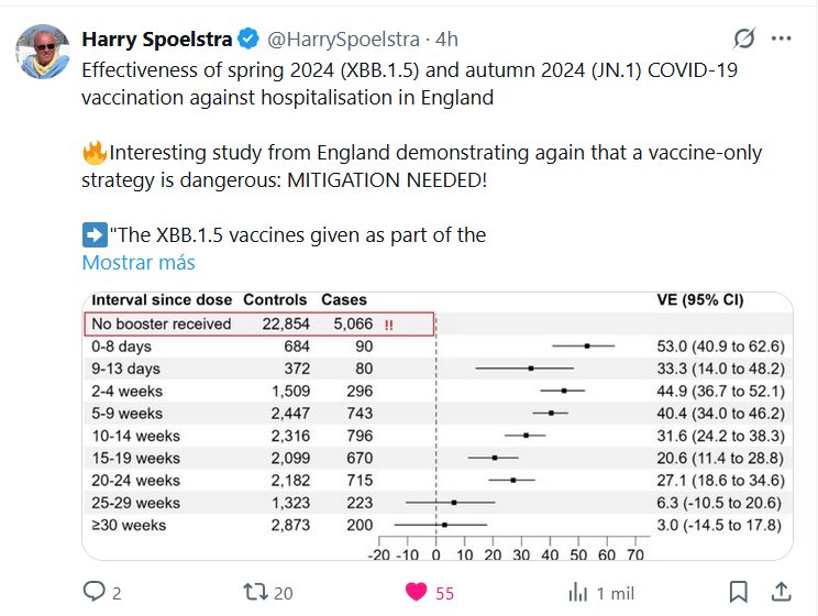 ➡️ "Las vacunas JN.1 de otoño de 2024 también proporcionaron una protección moderada, alcanzando un máximo del 43 %; se requiere más tiempo de seguimiento para evaluar la disminución de esta vacuna."