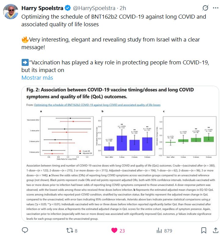 Dr. Harry Spoelstra @HarrySpoelstra · Optimización del esquema de BNT162b2 COVID-19 para prevenir el COVID persistente y la consiguiente pérdida de calidad de vida 🔥¡Un estudio israelí muy interesante, elegante y revelador con un mensaje claro!