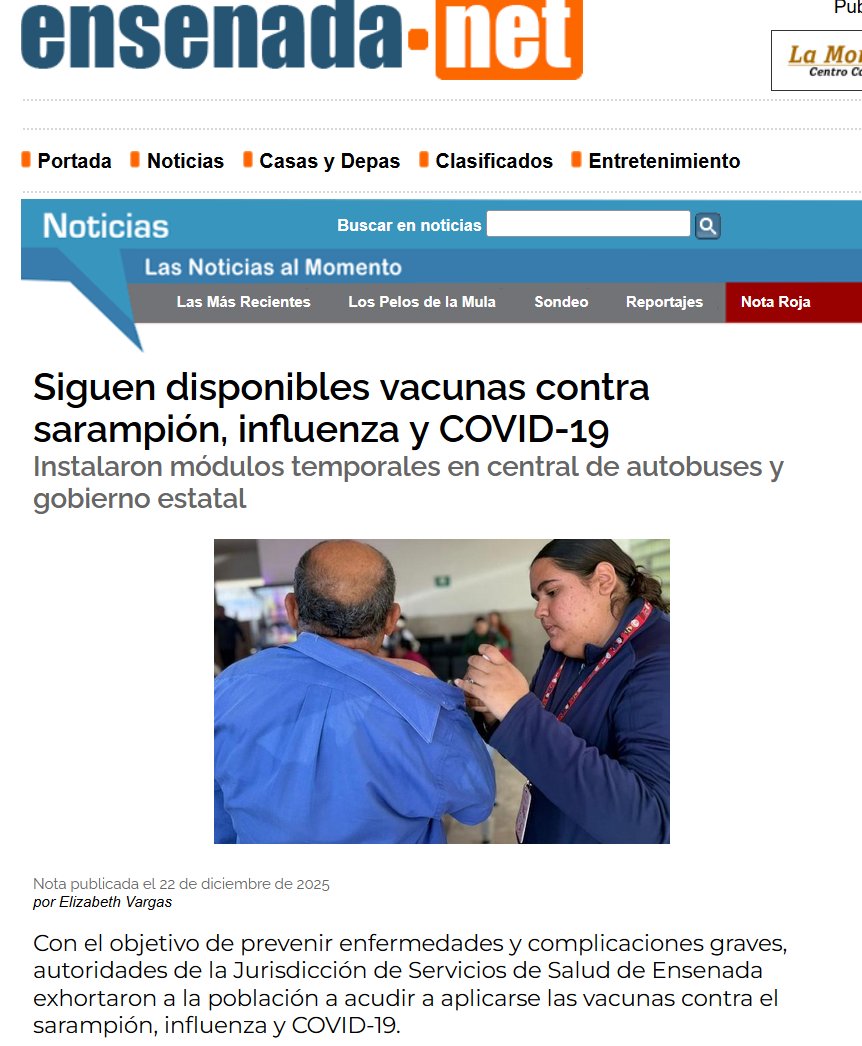 Con el objetivo de prevenir enfermedades y complicaciones graves, autoridades de la Jurisdicción de Servicios de Salud de Ensenada exhortaron a la población a acudir a aplicarse las vacunas contra el sarampión, influenza y COVID-19