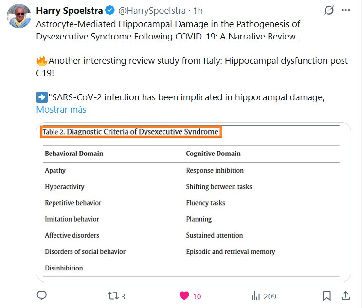 Daño hipocampal mediado por astrocitos en la patogénesis del síndrome disejecutivo tras la COVID-19: Una revisión narrativa. 🔥Otro estudio de revisión interesante de Italia: ¡Disfunción hipocampal tras la COVID-19! ➡️ «La infección por SARS-CoV-2 se ha relacionado con el daño hipocampal, contribuyendo a la patogénesis del síndrome disejecutivo observado en pacientes post-COVID-19».