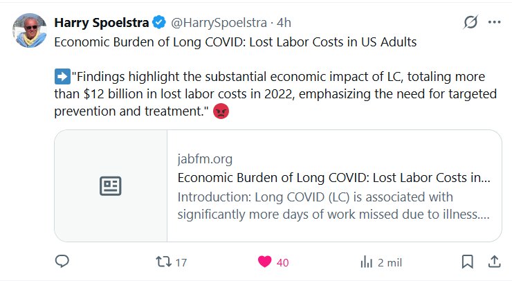 Carga económica de la COVID prolongada: Costos laborales perdidos en adultos estadounidenses ➡️ «Los hallazgos resaltan el impacto económico sustancial de la COVID prolongada, que totalizó más de $12 mil millones en costos laborales perdidos en 2022, lo que enfatiza la necesidad de prevención y tratamiento específicos». 😡