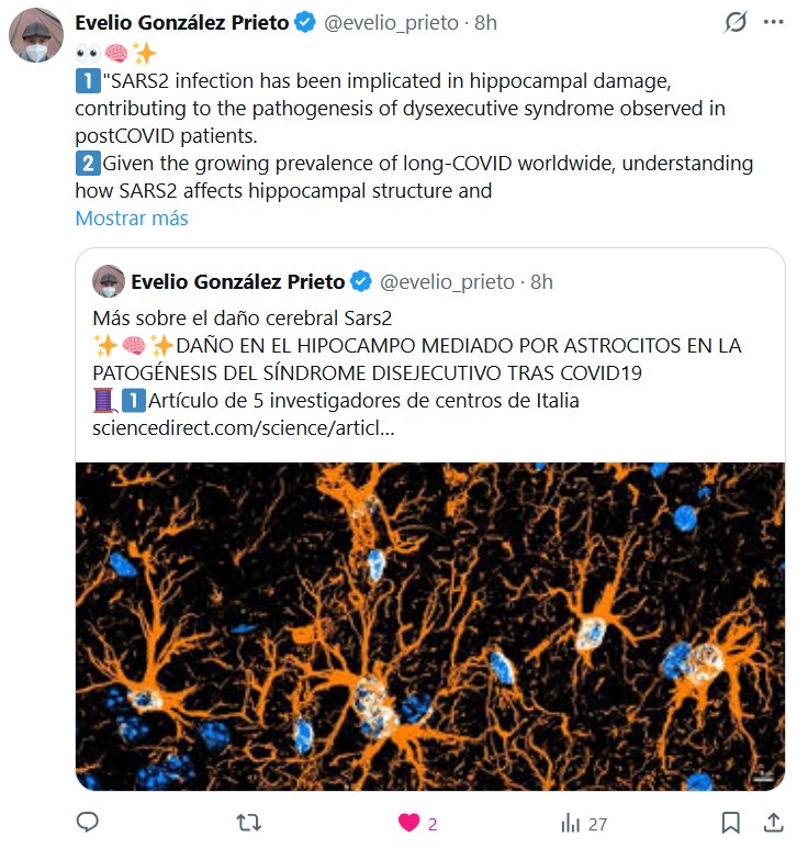 2⃣ Dada la creciente prevalencia de la COVID persistente en todo el mundo, comprender cómo el SARS2 afecta la estructura y la función del hipocampo se ha convertido en una prioridad científica y clínica urgente.