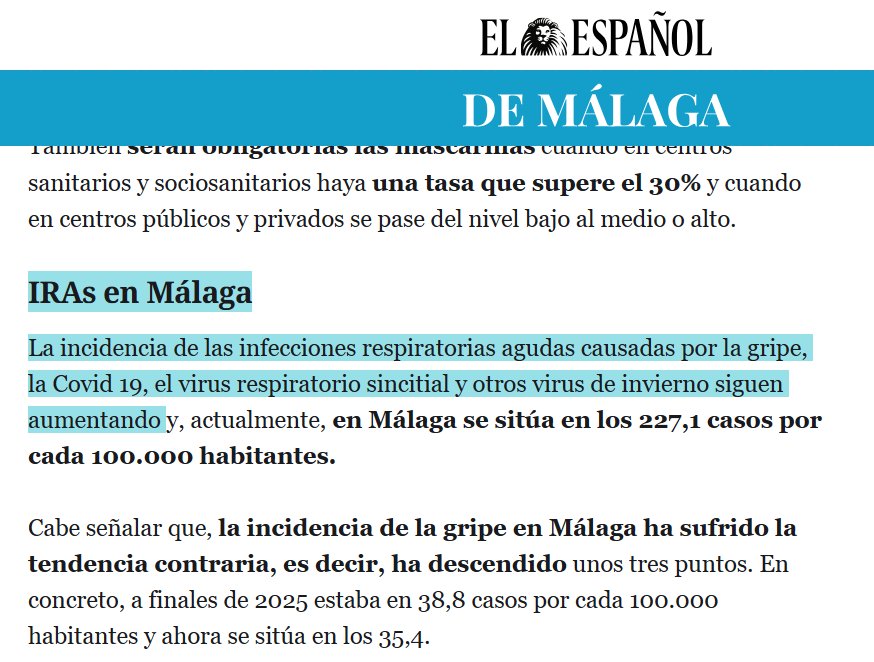 FELIZ 2026! CRECE COVID EN ESPAÑA Y EN ITALIA TAMBIÉN: IRAs en Málaga La incidencia de las infecciones respiratorias agudas causadas por la gripe, la Covid 19, el virus respiratorio sincitial y otros virus de invierno siguen aumentando