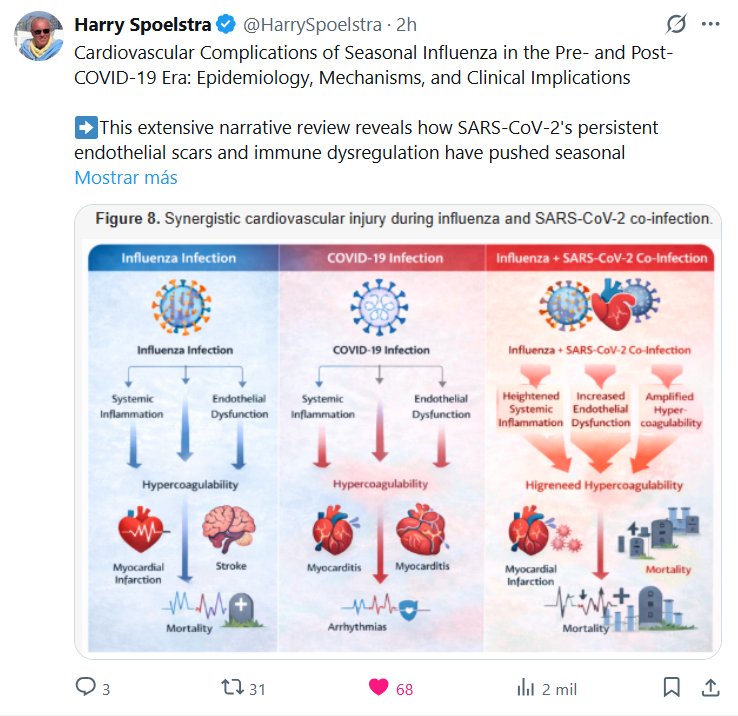 Complicaciones cardiovasculares de la influenza estacional en la era pre y post COVID-19: epidemiología, mecanismos e implicaciones clínicas Posted on enero 23, 2026 por coronado https://www.mdpi.com/2076-3271/14/1/57