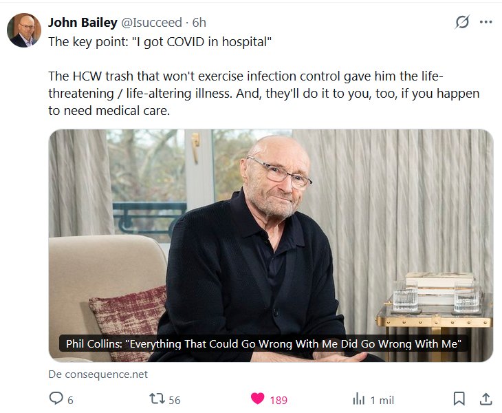 John Bailey @Isucceed · El punto clave: «Me contagié de COVID en el hospital» El personal sanitario de mala calidad que no controla la infección le provocó esta enfermedad potencialmente mortal. Y te lo harán a ti también, si necesitas atención médica.