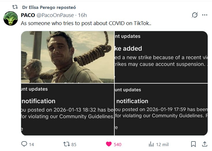 La Dra. Elisa Perego reposteó a PACO @PacoOnPause · Como alguien que intenta publicar sobre la COVID en TikTok… Posted on enero 27, 2026 por coronado