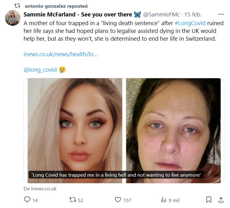 Sammie McFarland – See you over there 🦋 @SammieFMc Una madre de cuatro hijos atrapada en una «sentencia de muerte en vida» después de que el #CovidProlongado arruinara su vida dice que esperaba que los planes para legalizar la muerte asistida en el Reino Unido la ayudaran, pero como no lo harán, está decidida a terminar con su vida en Suiza