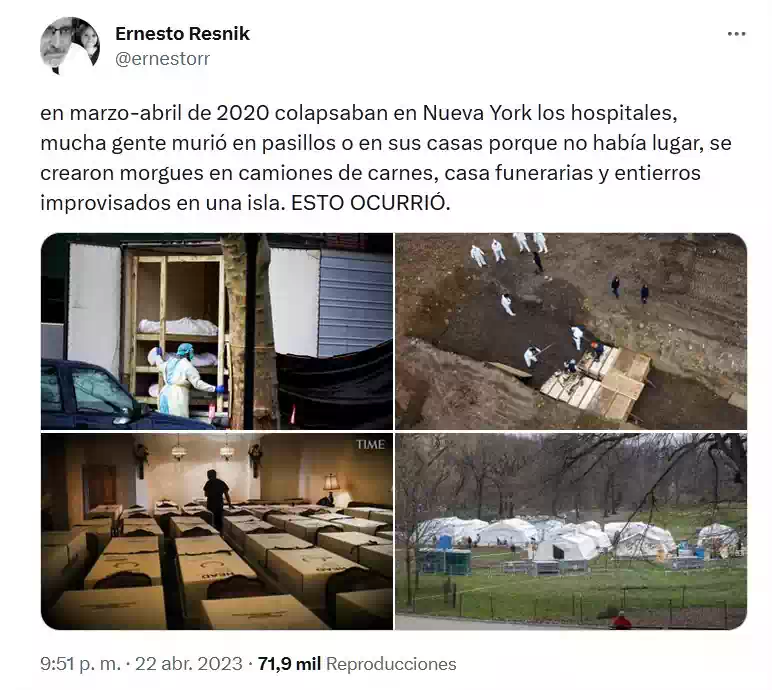 QUÉ NO TE BORREN LA MEMORIA! En marzo-abril de 2020 colapsaban en Nueva York los hospitales, mucha gente murió en pasillos o en sus casas porque no había lugar, se crearon morgues en camiones de carnes, casa funerarias y entierros improvisados en una isla. ESTO OCURRIÓ