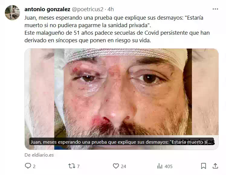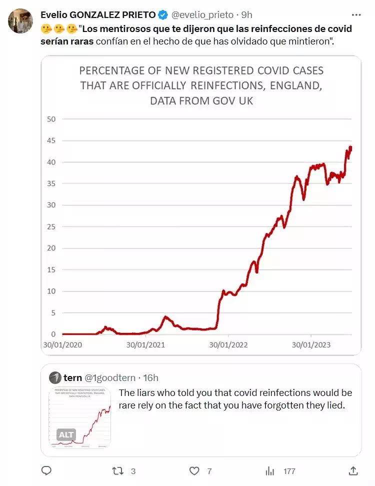 «Dos conversaciones agonizantes ayer. Uno con alguien que tiene una serie de nuevos problemas de salud después de contraer Covid en diciembre. …y la otra con alguien que ha tenido covid en las dos últimas oleadas «Lo evité durante tres años, pensé que se había acabado. Nunca había estado tan enfermo en mi vida»