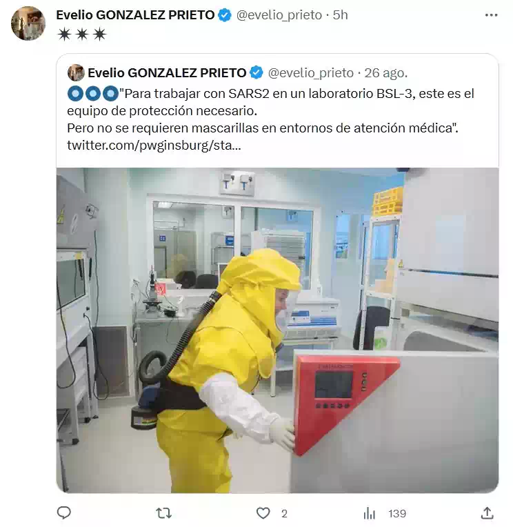 Y TAMBIÉN DESACONSEJABA LA MASCARILLA! “Que la OMS afirmase en 2020 que el SARS-CoV-2 no era de transmisión aérea es como si declarasen inesperadamente que la Tierra era plana o que el sol giraba alrededor de la Tierra. El paradigma dominante en 2013 era que los virus respiratorios se transmitían por el aire”
