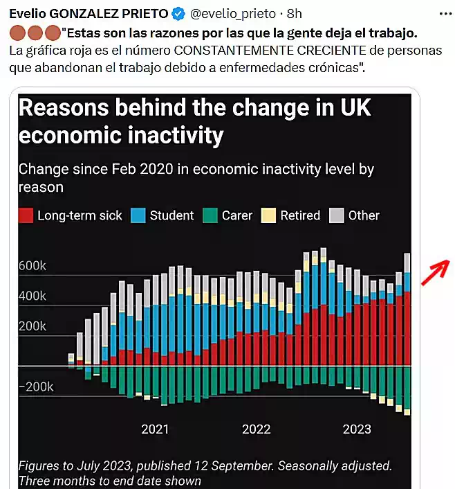 SEGURO QUE PANDEMIA LIBERADA ERA BUENA IDEA? Un exceso de 600.000 personas en el Reino Unido han sido declaradas incapaces para seguir trabajando desde que comenzó la pandemia. Casi seguro que por #CovidPersistente o relacionado con #COVID. Y muy seguramente sea solo un pequeño porcentaje de los afectados.