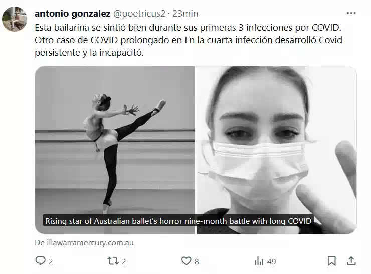 “La vacuna reduce el riesgo de COVID persistente, pero no lo suficiente como para vacunarse y relajarse. El riesgo es peor con la reinfección con Omicron. La única forma de evitar un COVID prolongado es evitar la (re)infección.”