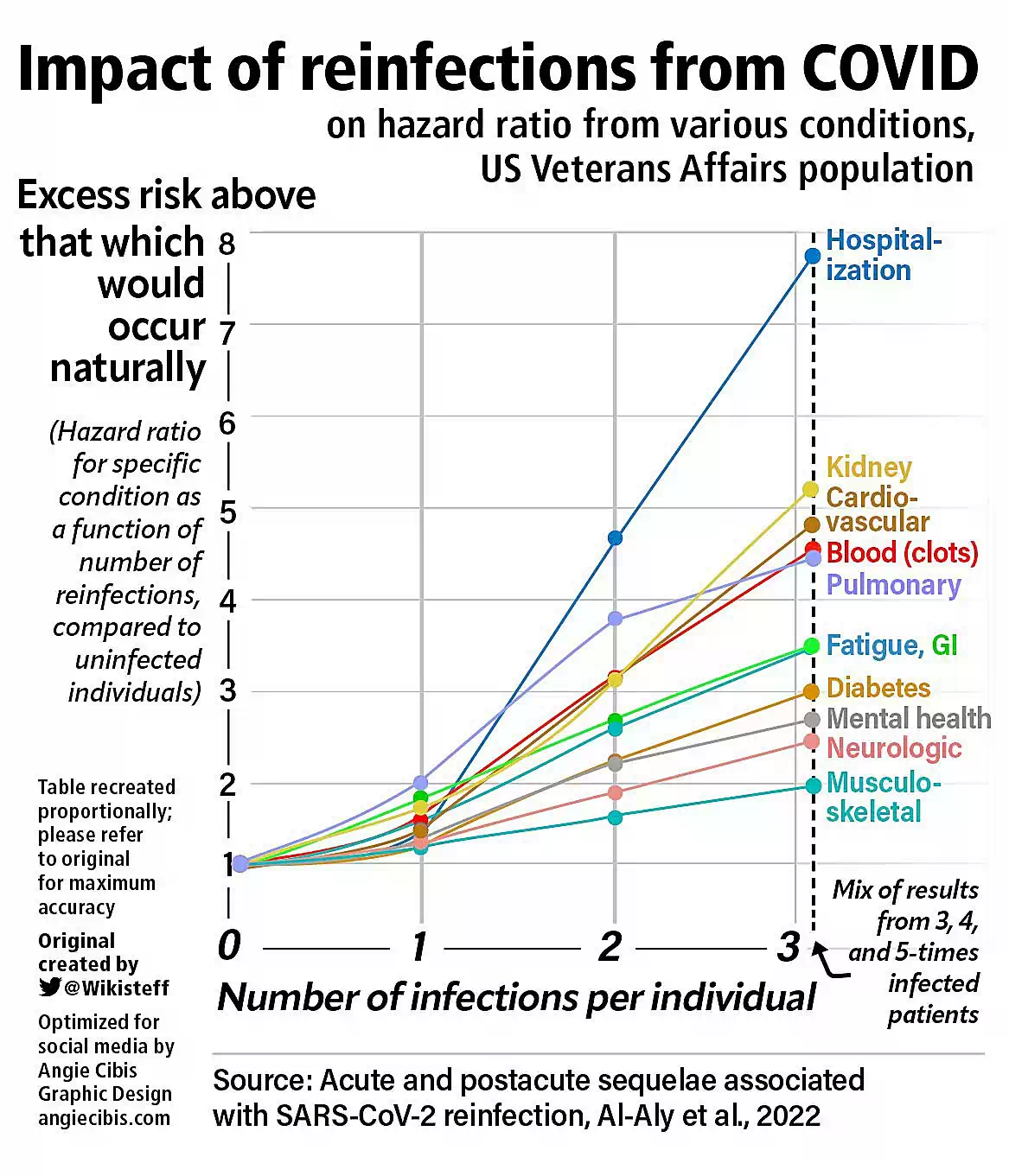 Anthony J Leonardi, MBBS, PhD @fitterhappierAJ Aún no habéis comprendido la importancia de los estudios de Ladhani y de los NIH sobre las reinfecciones y Long Covid. Significa que si la tendencia continúa con igual riesgo en la reinfección, la probabilidad de por vida de LC (LONGCOVID) pasó de 10-20% a 99,9% .